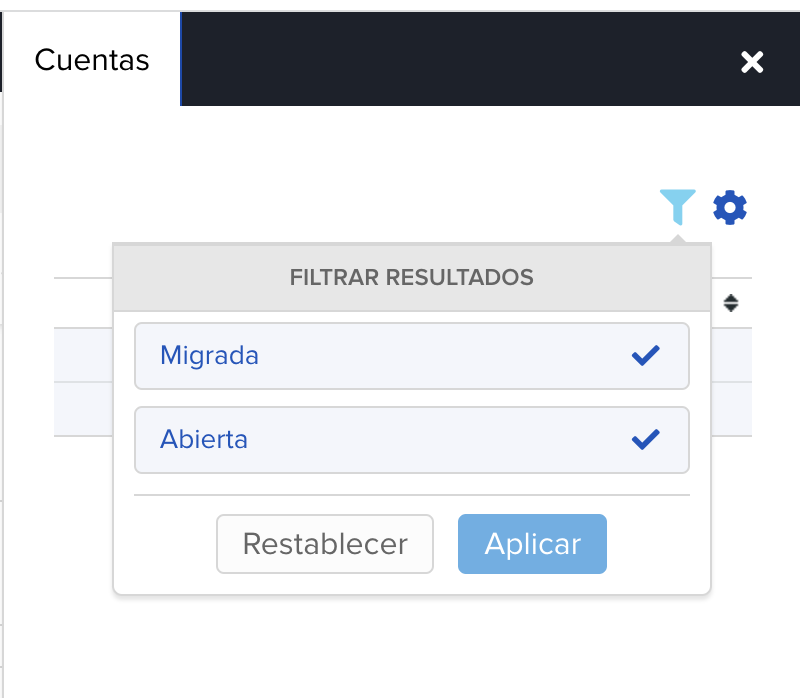 En el desplegable, abre el icono de filtro, marca tanto Migrada como Abierta y pulsa Aplicar: